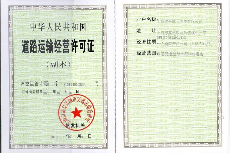 物流運(yùn)輸資質(zhì)